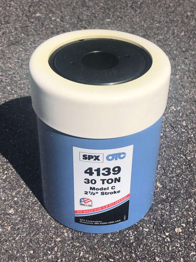OTC Tools Model 4139 Model C 30-Ton Spring-Return Hollow Center Hydraulic Ram, 2-1/2" Stroke, Retracted Height: 6-1/4", Extended Height: 8-3/4". *EXCELLENT CONDITION*