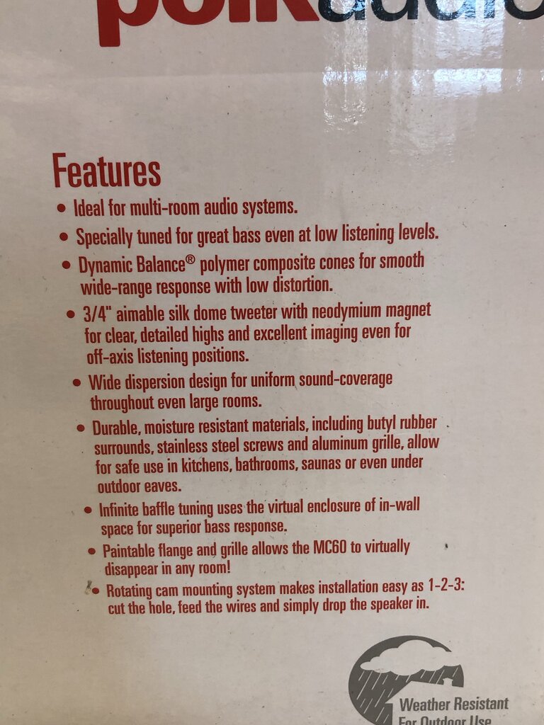 Polk Audio MC60 High-Performance In-Ceiling Speakers with 6.5" Driver 2-Pack. *NEW IN BOX* *PICKUP ONLY*