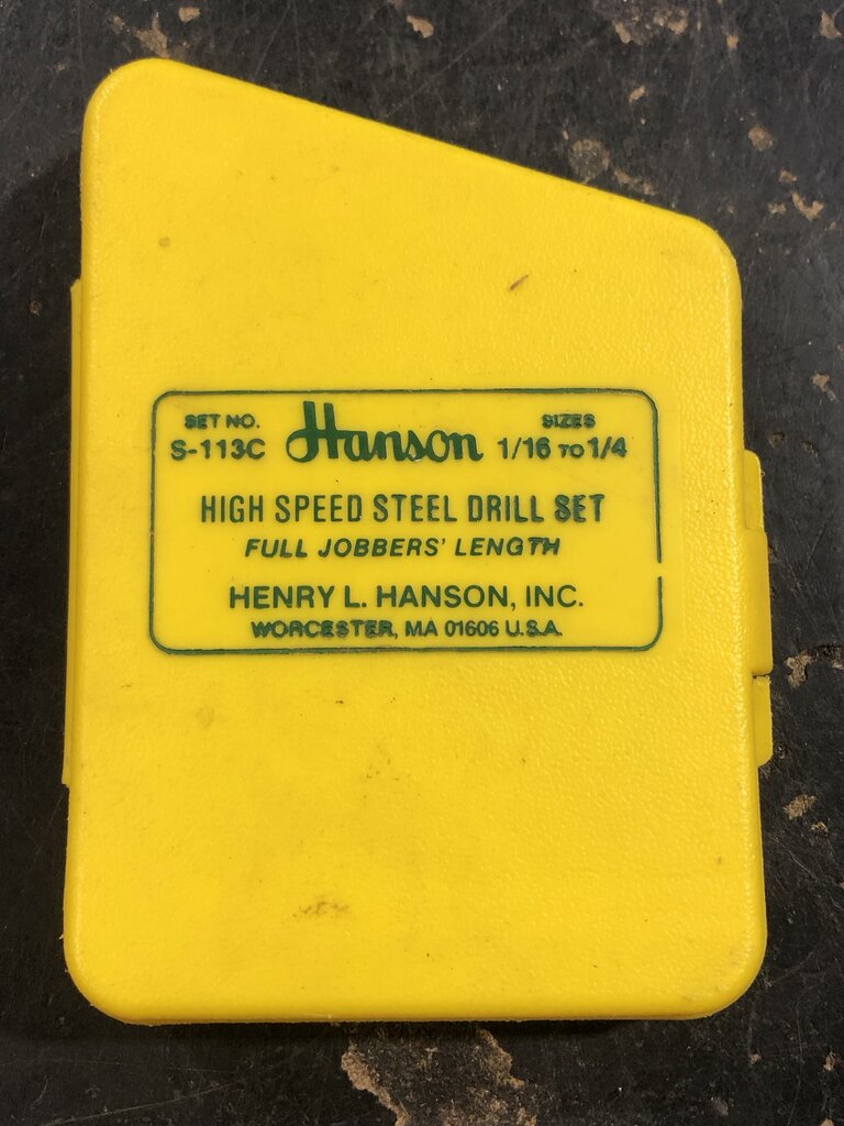 Hanson S-113C 13-Piece SAE Jobbers' Length Drill Bit Set. 1/16" - 1/4". *MADE IN USA*