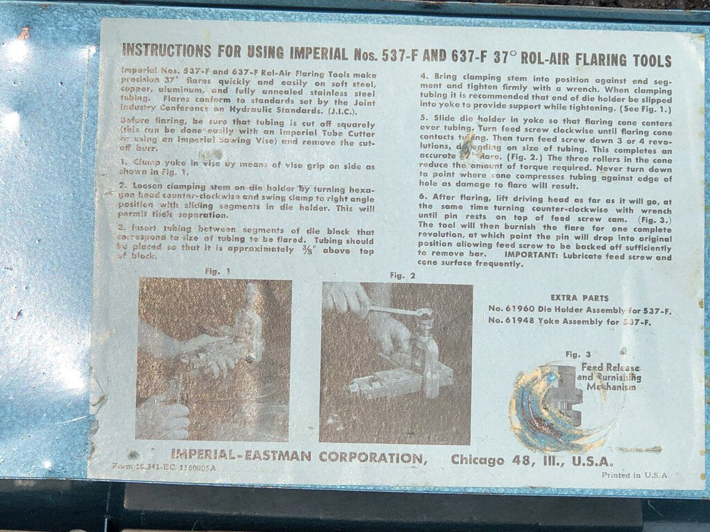 Imperial-Eastman 537-F 37-Degree Rol-Air Flaring Tool Kit. Makes 37-Degree Flares Smoothly and Easily on Soft Steel, Copper, Aluminum, and Fully Annealed Stainless Steel. 3/4, 7/8, 1, 1-1/4 in.*MADE IN USA*