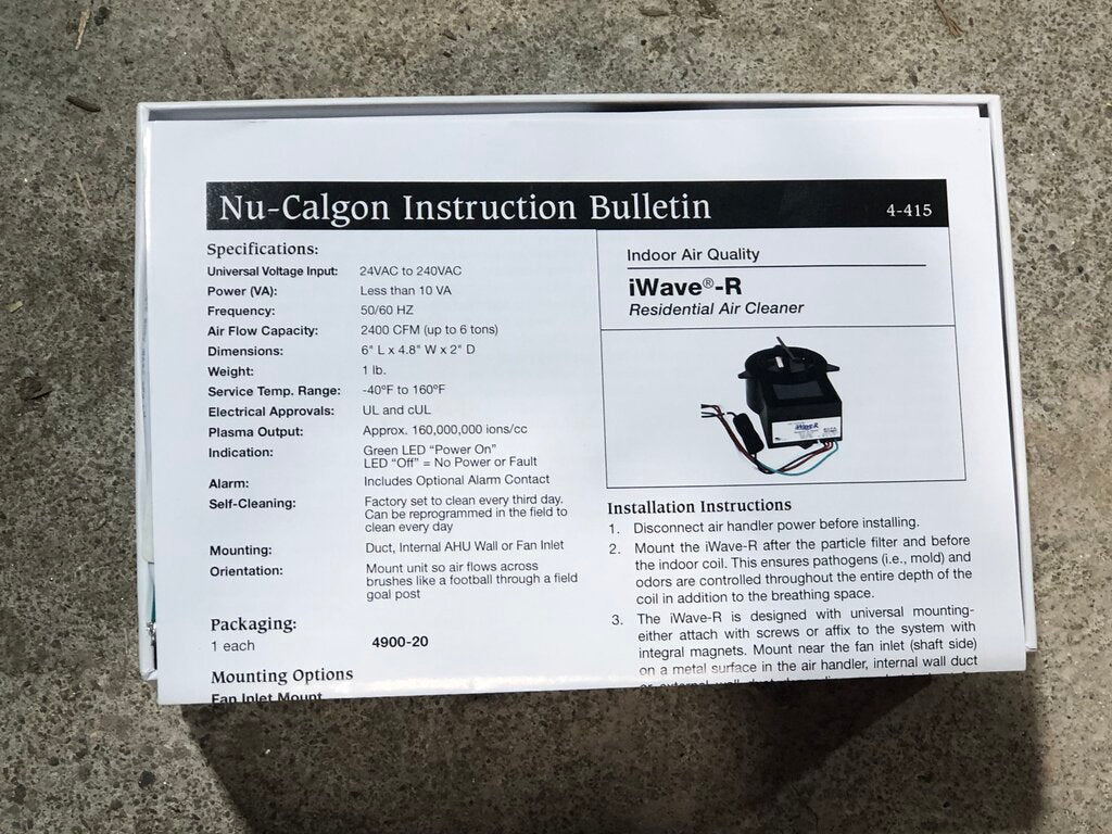 Nu-Calgon 4900-20 iWave-R Self Cleaning Air Purifier, 2400 CFM. *NEW IN BOX*