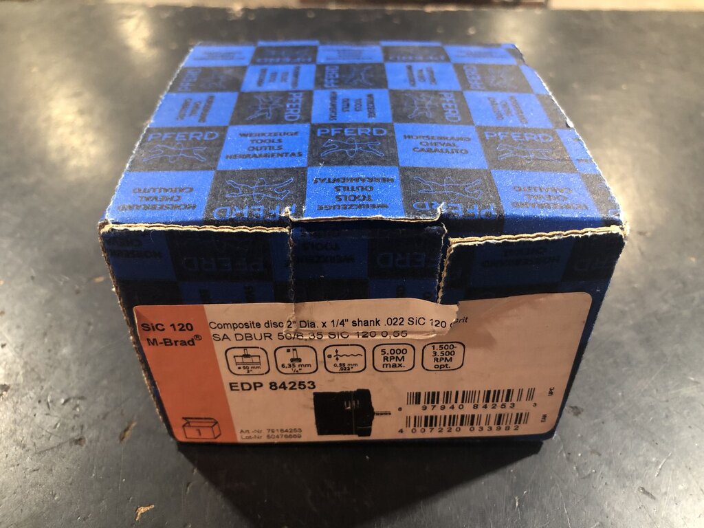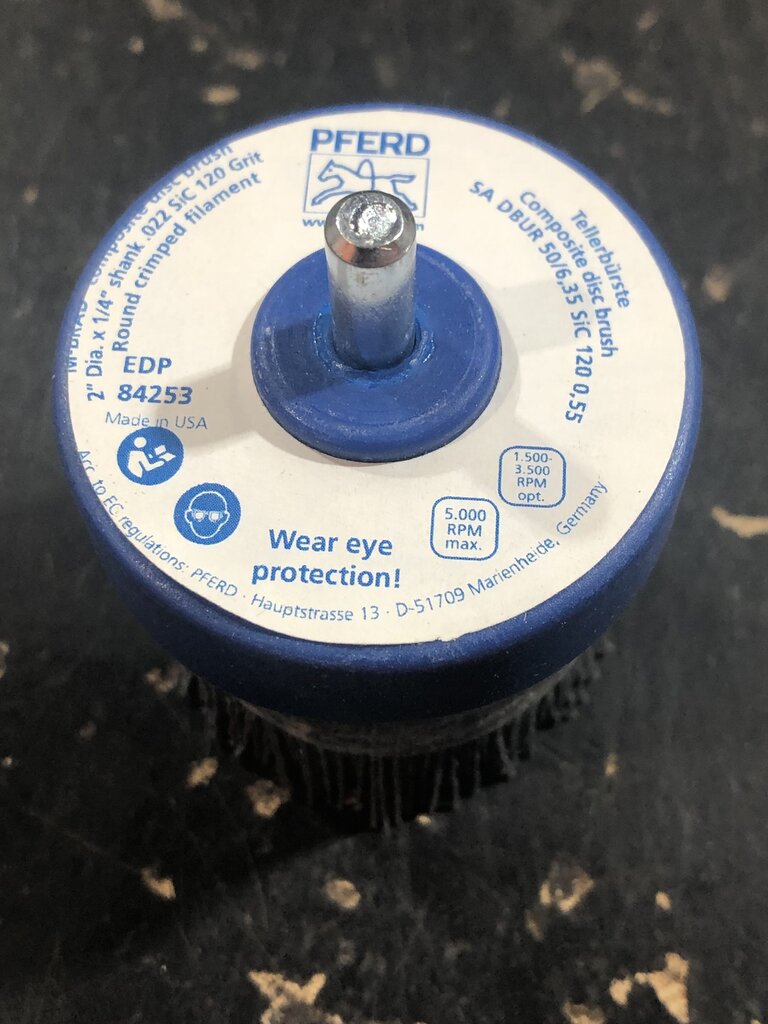 PFERD 84253 M-Brad Stem-Mounted Composite Disc Brush, Silicon Carbide, 2" Diameter, 0.022 Round Filament, 1/4" Shank, 5000 RPM, 120 Grit. *NEVER USED*